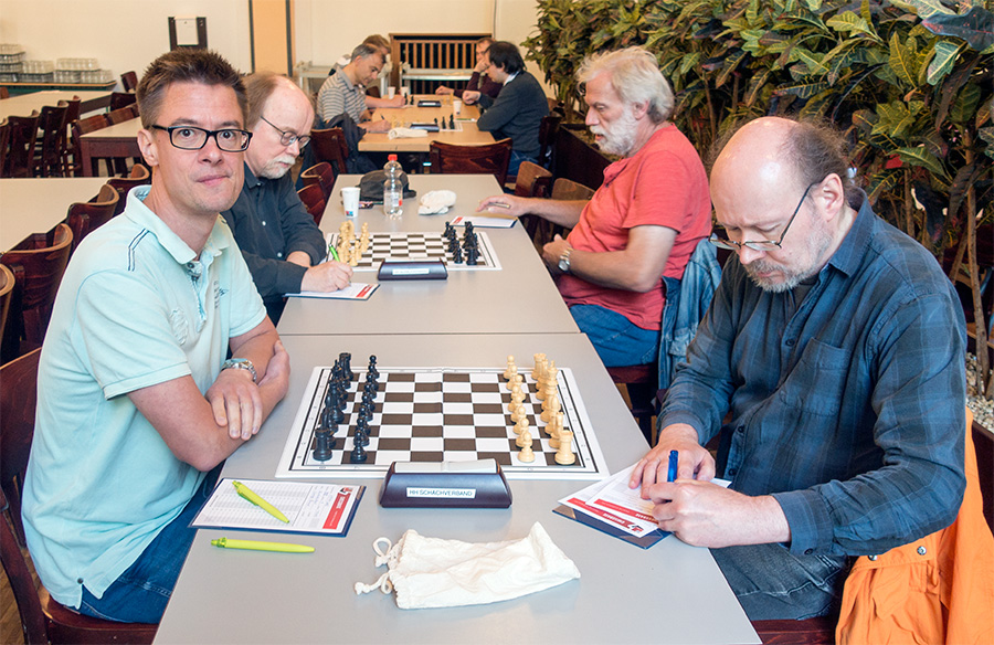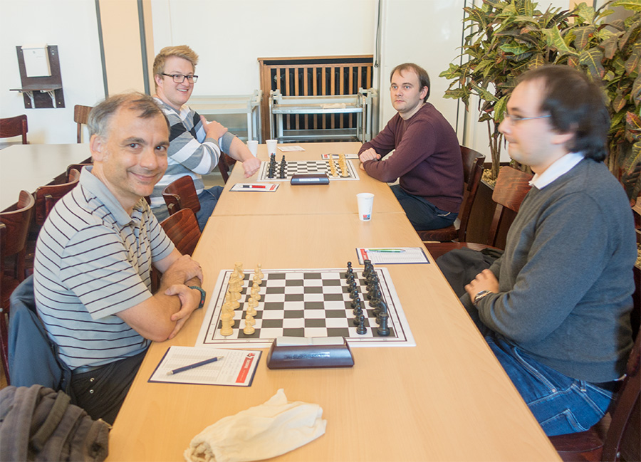 Nach einem schnellen Sieg von Jeronimo gewannen die beiden Christophs. Kubi in besserer Stellung auf Zeit und CR ein Turmendspiel mit mehr Bauern. Matthias hatte Dame gegen zwei Leichtfiguren, aber sein Gegner konnte ihn mit seinem Restmaterial zum Remis beschäftigen.