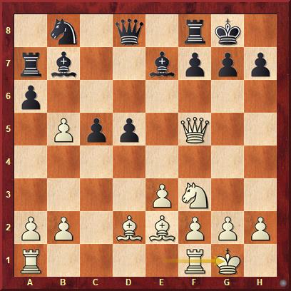 Der Computer hält die weiße Stellung für klar gewonnen (+2,68 wg. schwachen schwarzen Bauern am Königsflügel, schlechtem Lb7, Feld f5) und wenige Züge zuvor lag die Bewertung sogar noch höher. Der Weißspieler sah hingegen Anlass, mit massiven Gewaltmaßnahmen die Stellung zu verändern.