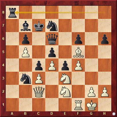 Der Computer hält die weiße Stellung für klar gewonnen (+2,68 wg. schwachen schwarzen Bauern am Königsflügel, schlechtem Lb7, Feld f5) und wenige Züge zuvor lag die Bewertung sogar noch höher. Der Weißspieler sah hingegen Anlass, mit massiven Gewaltmaßnahmen die Stellung zu verändern.