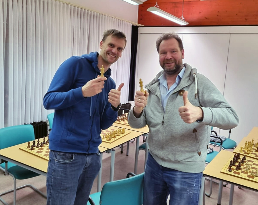 Lutz gewann dann auch, er war ja auch der Einzige von uns mit einem (kleinen) DWZ-Plus. Aber trotzdem: Starke Leistung!