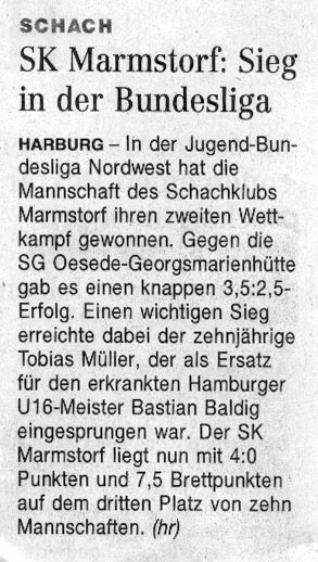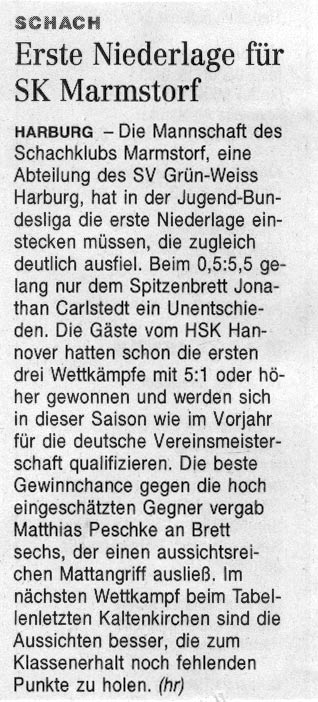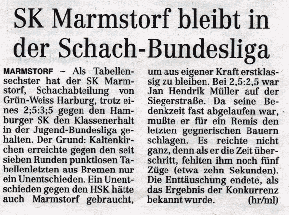 Als Tabellensechster hat der SK Marmstorf, Schachabteilung
